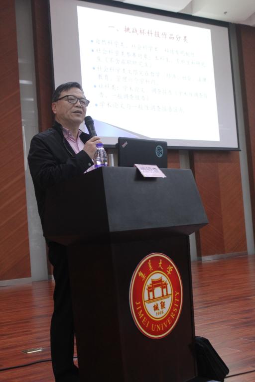 陈明森教授是中国人民银行货币政策委员会特邀专家,福建省人民政府经济顾问,福建省证券经济研究会会长。国务院政府特殊津贴专家,福建省劳动模范。曾任福建社会科学院经济研究所所长、研究员,厦门国家会计学院管理研究所所长、教授,厦门大学经济学院兼职教授、博士生导师。他长期担任“挑战杯”省赛评审专家,对该项竞赛的研究有很深的造诣。讲座中,他从“挑战杯”竞赛参赛作品的分类、学术论文写作范式、调查报告写作范式、调查报告如何引起评委兴趣等方面详细解读“挑战杯”竞赛,并用具体案例详细点评分析,讲座内容充实饱满,条例清晰,分析透彻,让到场的师生对“挑战杯”竞赛有了更进一步的理解,满足了我校师生对挑战杯大学生课外科技作品竞赛社科类项目作品创作的兴趣,回答了师生们的疑惑。