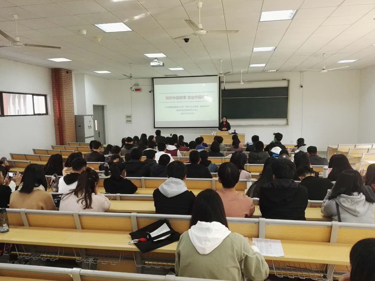 为进一步深入学习和领会十九大精神,校团委特邀马克思主义学院王玉珏老师为校学生会、校研究生会、校青年志愿者协会、校学生社团联合会、校团委学生记者团、校学生科创服务中心等六个校级学生组织的学生骨干,举办《讲好中国故事,发出中国声音》专题讲座。