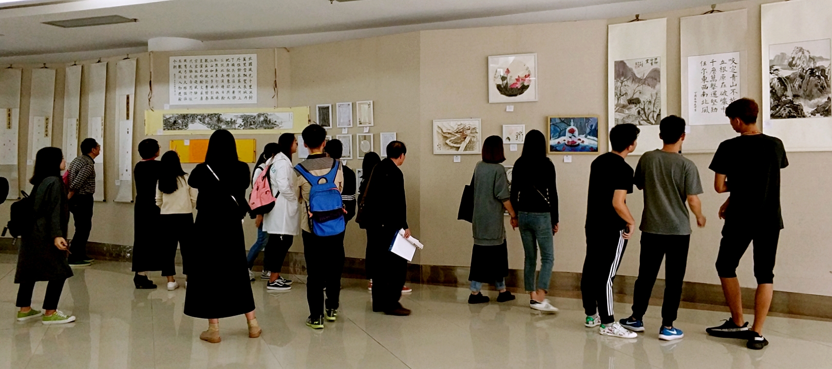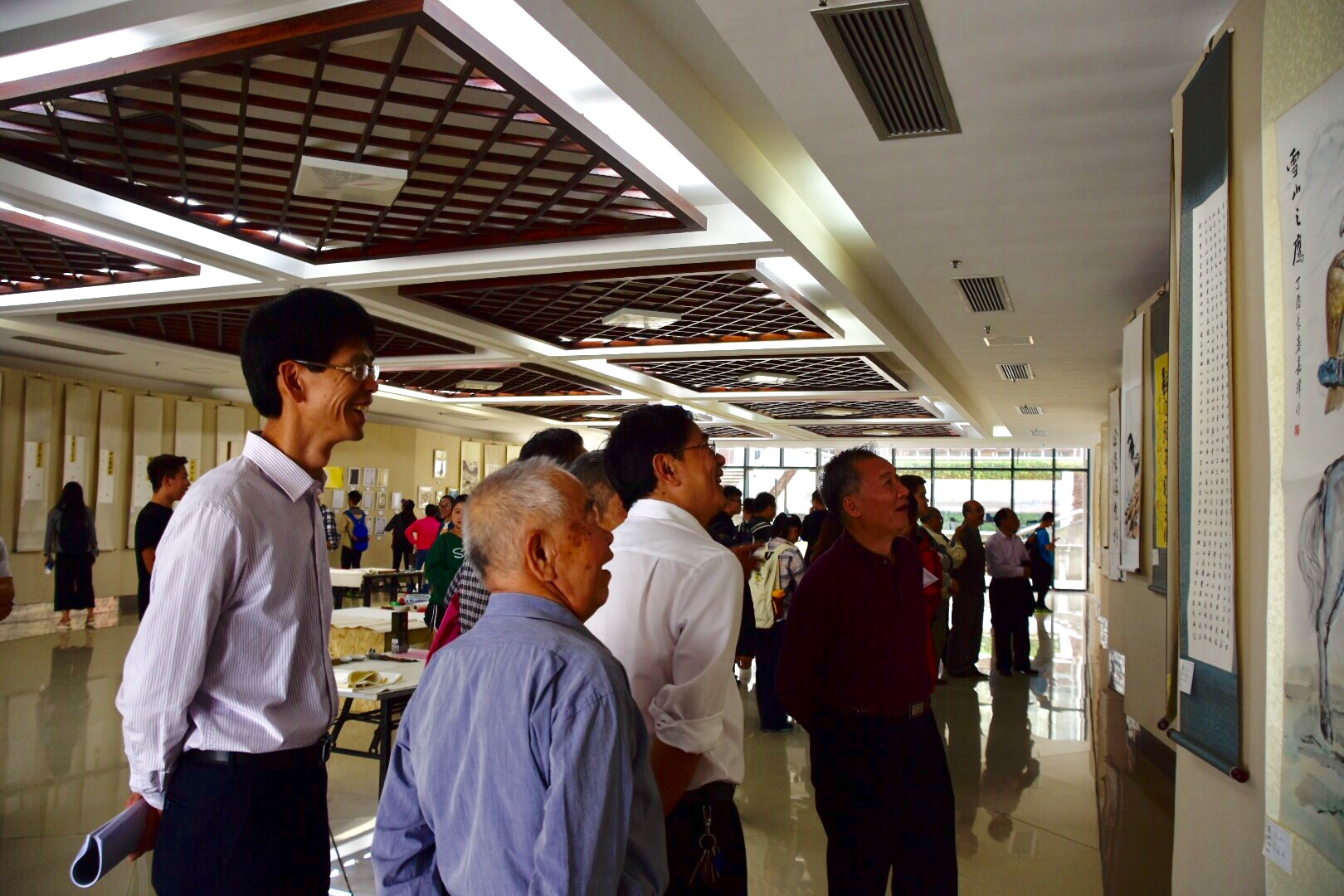11月22日,由校关工委、离退休工作处和校团委联合主办、校学生书画协会承办的“墨书十九大 彩绘中国梦”主题书画摄影作品展在中山纪念楼开展。校党委副书记郑志谦、洪文建,校关工委副主任林耀坤、赖强谋,校老体协主席罗良庚、校离退休党委书记郭修坚等涉老组织负责人一同参观了参展作品。