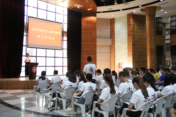 近日,我校学生“习近平治国理政思想”读书社举行习近平总书记“7·26”重要讲话精神学习活动。读书社100多名同学一同观看了《书写中国特色社会主义新篇章——学习习近平总书记“7·26”讲话精神》学习辅导报告视频,并交流分享学习心得。此次活动是我校团员青年“青春喜迎十九大·不忘初心跟党走”主题宣传教育系列活动之一。