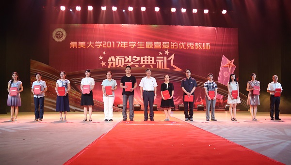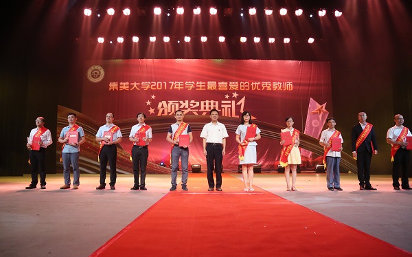 春播桃李三千圃,秋来硕果满神州。9月20日晚,我校2017年“学生最喜爱的优秀教师”颁奖典礼在诚毅影剧院举行,全校1000多名师生欢聚一堂,揭晓2017年“学生最喜爱的优秀教师”评选结果。罗施福、陈伟彬、尤成德、陈文胜、黄斌、张玉凤、赖艺芬、钟启茂、David、彭向阳等10位老师获得“学生最喜爱的优秀教师”称号。