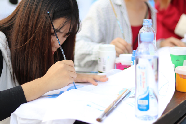 两个体验区为入口处的海洋文化节文化创意集市和出口处的海洋游戏体验区。在海洋文化节文化创意集市中,同学们自主设计制作的海洋文创作品用新奇的创意为嘉年华打造不一样的视觉盛宴。不少观摩的同学纷纷参与现场的DIY活动,通过手绘贺卡及T恤等体验项目,用独特的创意给自己留下“海”味印记。在海洋游戏体验区中,小鱼飞刀、小鱼投篮、小鱼连连看等各类以海洋为主题的闯关游戏吸引了众多同学的参与。