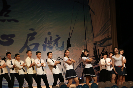 当晚,由轮机工程学院主办的“庆首航•迎新生”文艺晚会在我校古龙大礼堂举行。“新起点,新起航”不仅是对新生的寄语,更是对校船“育德”轮载梦起航的自豪与企盼。