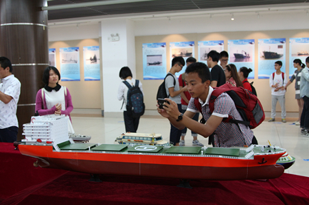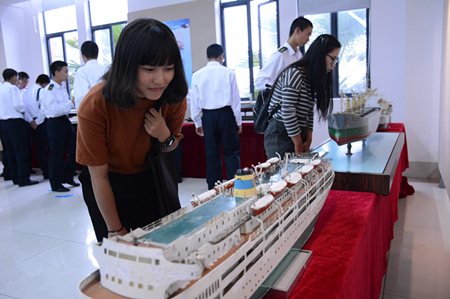 展会上还展出了部分由我校学生亲手制作的船模,参与船舶模型制作的学生邓旋激动地说:“在船舶模型的制作中我了解到了许多知识,今天看到这么多人来参观,很欣慰。未来能够在“育德”轮这样高大上的实习船上实习,我觉得很幸运,我为集大自豪。”外国语学院的邱进宁说:“此次的船模展给了我极大的触动,船模的演变很直观地见证了学校的强大与成长,我感到自豪的同时,又深深觉得集大的今天来之不易。”