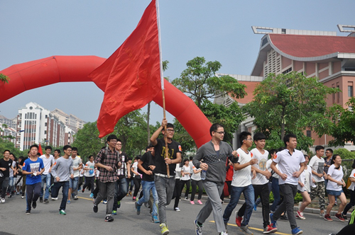 5月6日下午,我校举行了2015年“走下网络走出宿舍走向操场”(以下简称“三走”)主题群众性课外体育锻炼活动启动仪式。