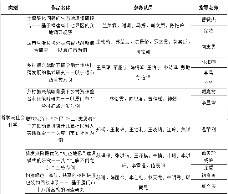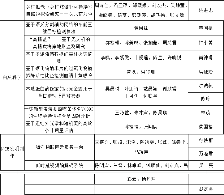 根据第十五届“挑战杯”福建省大学生课外学术科技作品竞赛资格及形式审查实施细则要求,现将我校31项拟报送省赛的参赛作品相关信息公示如下: